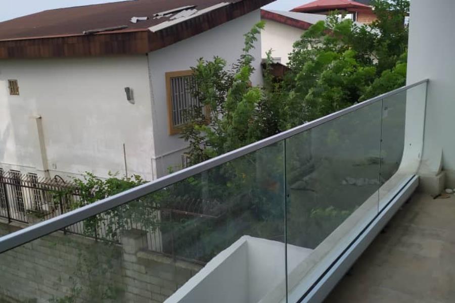 جان پناه شیشه ای با پایه گوه ای و هندریل استیل